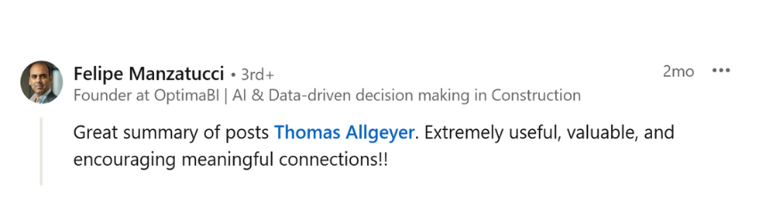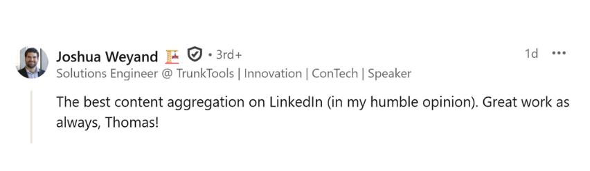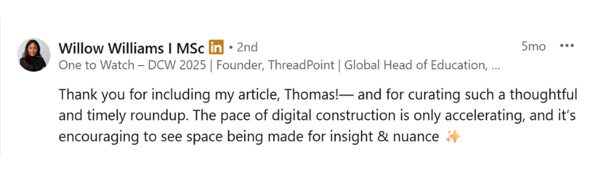 We curate the best of LinkedIn for you: hand-picked posts and expert insights on digital construction, smart manufacturing, industrial innovation, and connected tools. Our LinkedIn RoundUps filter out the noise — delivering only the content that truly drives value.